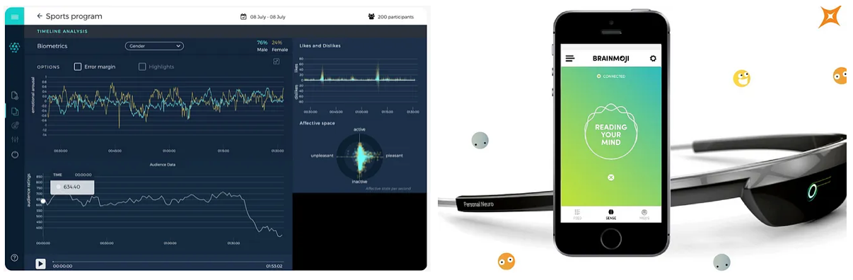 MindProber uses multiple types of data (galvanic skin responses, heart rate activity or eye-tracking, and declarative data) to ‘…measure viewer’s engagement with media content and predict audience churn’. Measuring engagement also is offered by BrainCo. It uses its FocusEDU platform to allow companies to measure engagement in groups and to find ways to ‘… optimise and personalise the delivery of their content to their customers’.